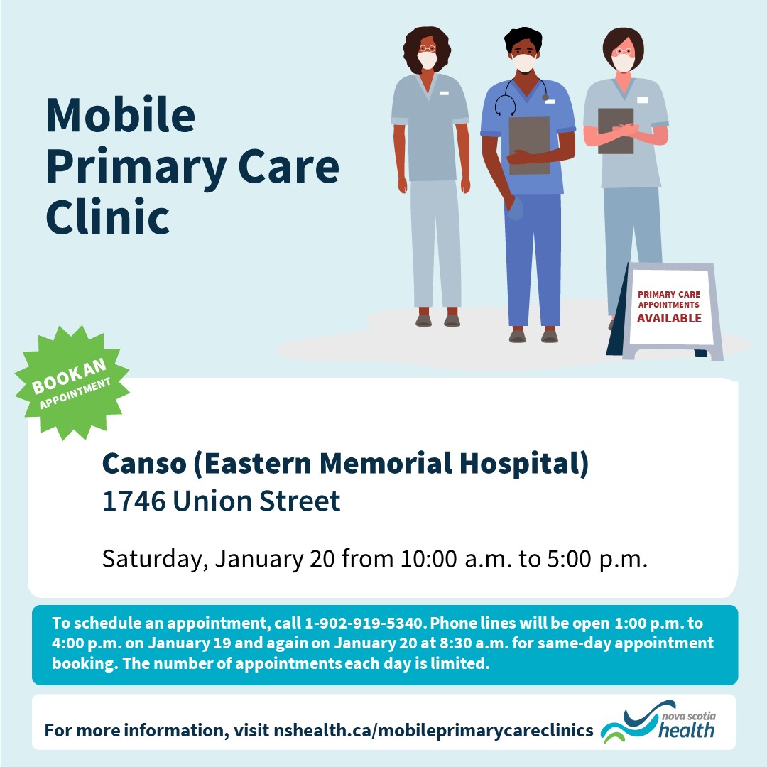 Mobile Primary Care ClinicCanso (Eastern Memorial Hospital)1746 Union StreetSaturday, January 20th from 10:00am - 5:00pm